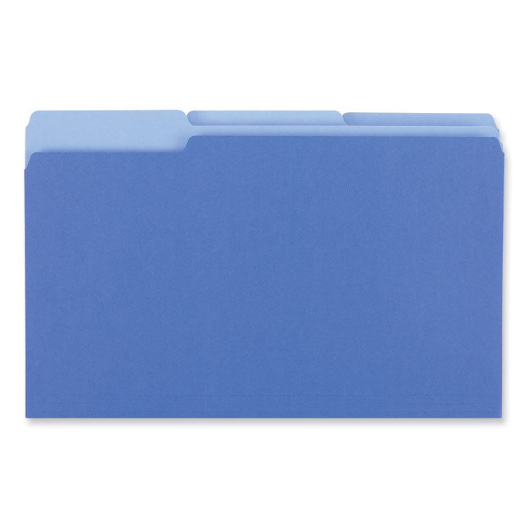 Universal Interior File Folders, 1/3-Cut Tabs: Assorted, Legal Size, 11-pt Stock, Blue, 100/Box (UNV15301)