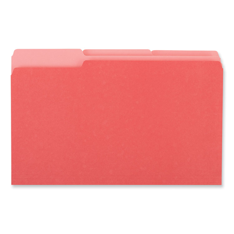Universal Interior File Folders, 1/3-Cut Tabs: Assorted, Legal Size, 11-pt Stock, Red, 100/Box (UNV15303)