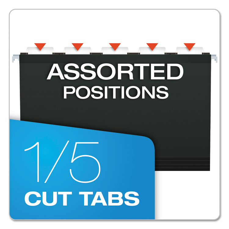Pendaflex Colored Reinforced Hanging Folders, Legal Size, 1/5-Cut Tabs, Black, 25/Box (PFX415315BLA)