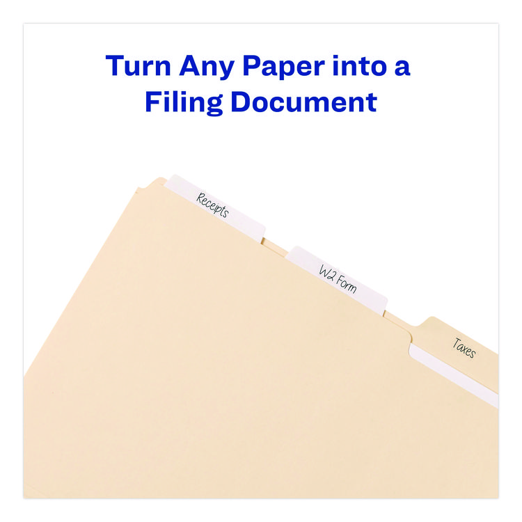 Avery Printable Plastic Tabs with Repositionable Adhesive, 1/5-Cut, White, 1.75″ Wide, 80/Pack (AVE16282)