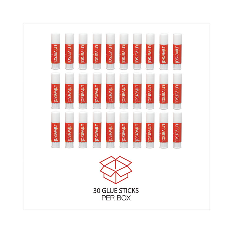 Universal Glue Stick Value Pack, 0.28 oz, Applies and Dries Clear, 30/Pack (UNV75748VP)