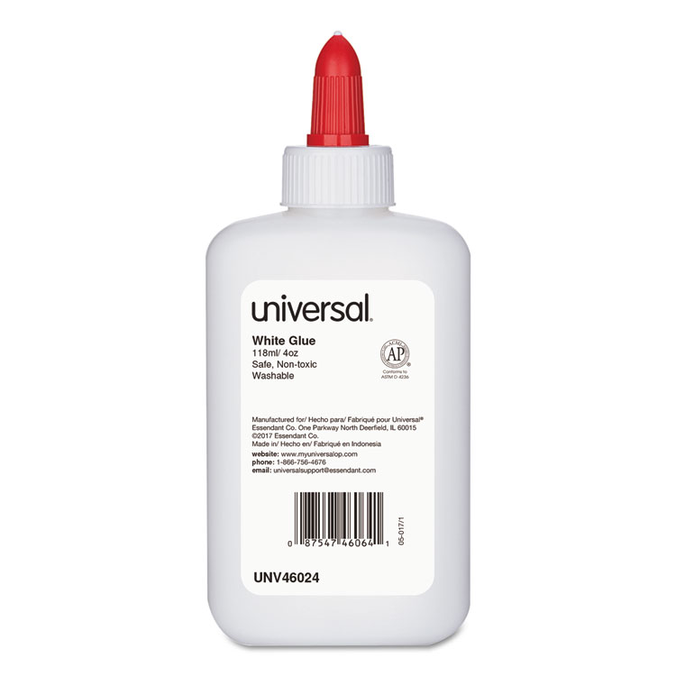 Universal Washable White Glue, 4 oz, Dries Clear, 3/Pack (UNV46064)