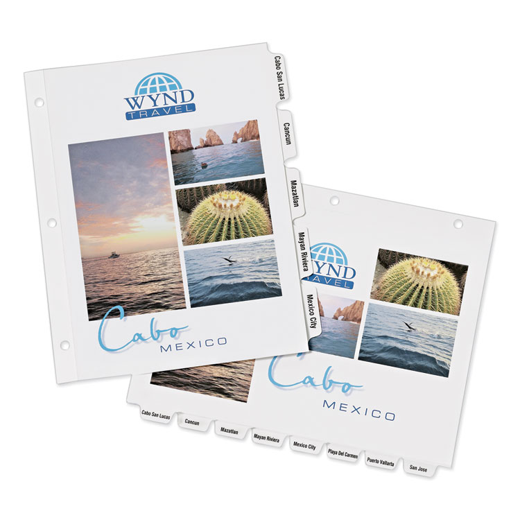 Avery Print and Apply Index Maker Clear Label Dividers, Big Tab, 8-Tab, 11 x 8.5, White, 5 Sets (AVE11493)