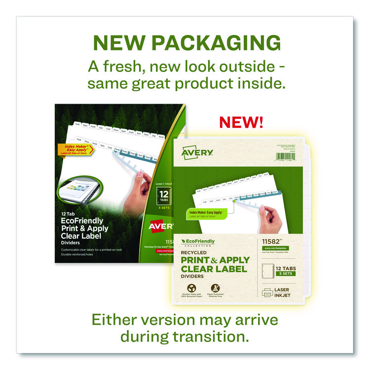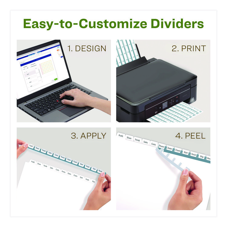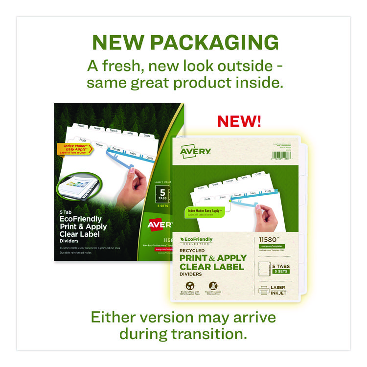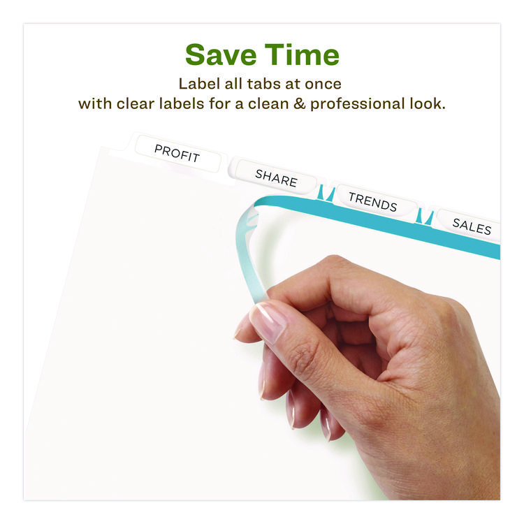 Avery Print and Apply Index Maker Clear Label Dividers, 5-Tab, White Tabs, 11 x 8.5, White, 50 Sets (AVE11556)
