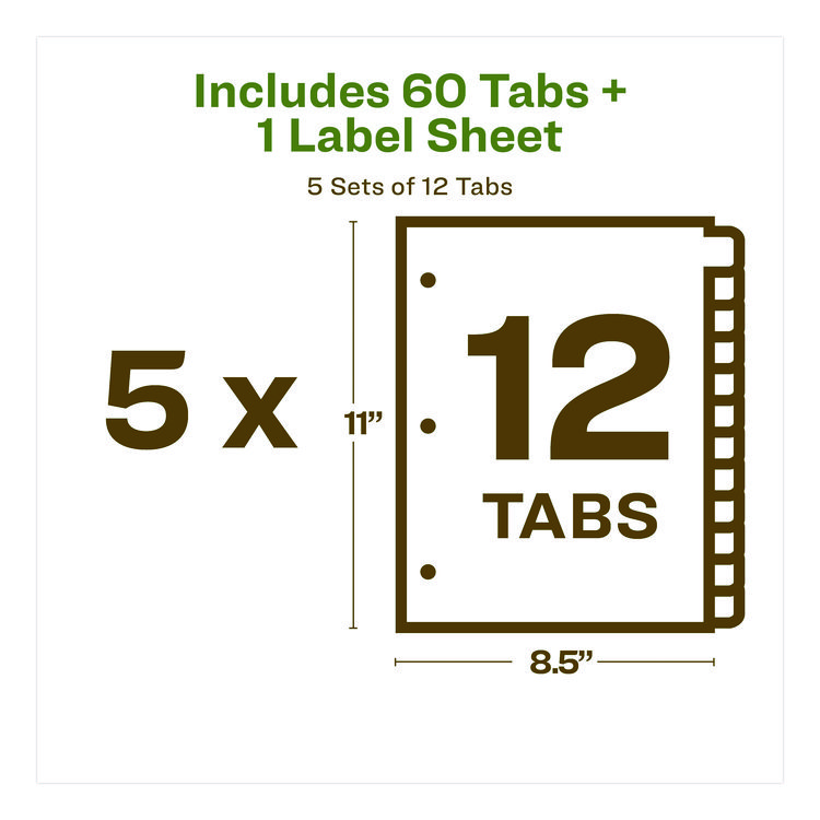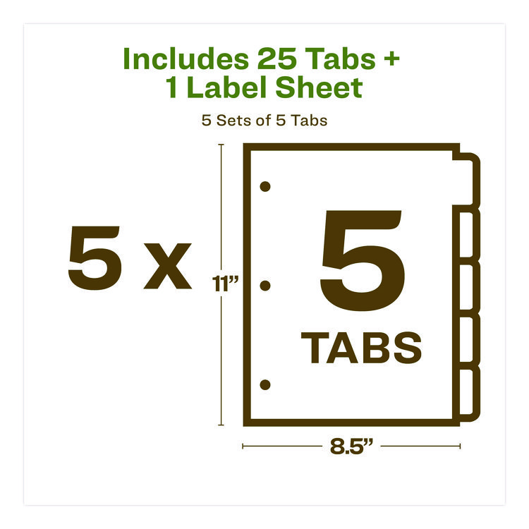 Avery Customizable Print-On Dividers, 3-Hole Punched, 5-Tab, 11 x 8.5, White, 25 Sets (AVE11517)