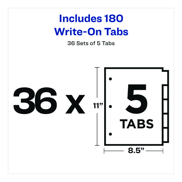 Avery Write and Erase Plain-Tab Paper Dividers, 5-Tab, 11 x 8.5, White, 36 Sets (AVE11506)