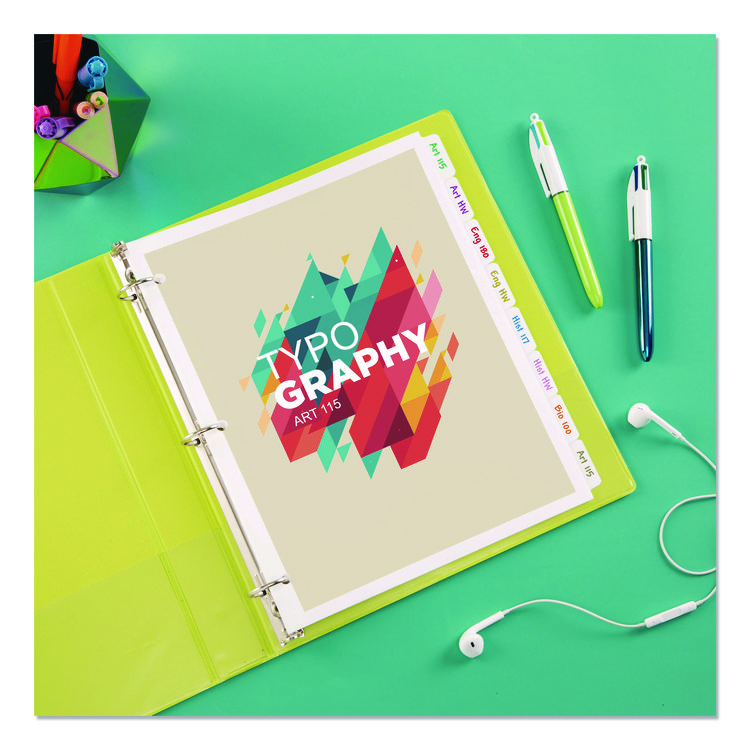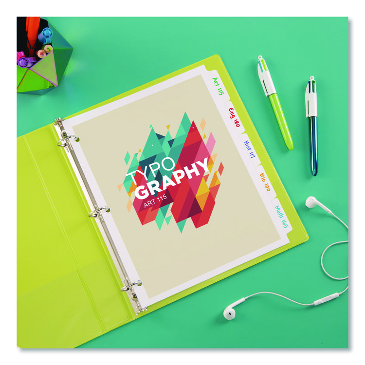 Office Essentials Plastic Insertable Dividers, 8-Tab, 11 x 8.5, Assorted Tabs, 1 Set (AVE11467)