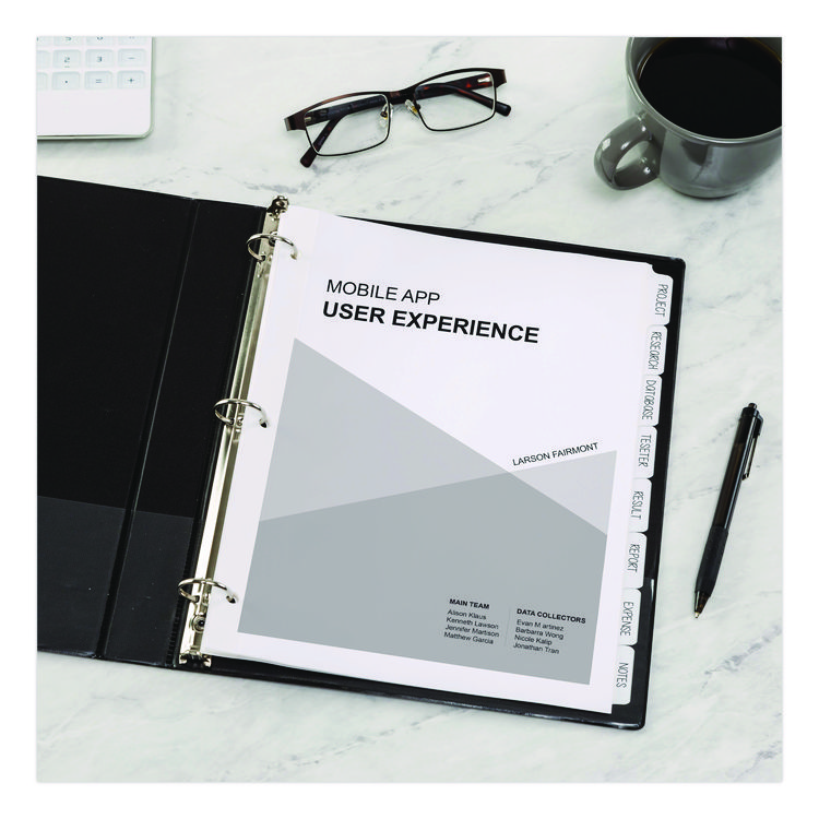 Office Essentials Table ‘n Tabs Dividers, 15-Tab, 1 to 15, 11 x 8.5, White, Assorted Tabs, 1 Set (AVE11675)