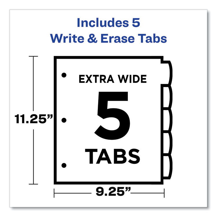Avery Big Tab Write and Erase Durable Plastic Dividers, 5-Tab, 11 x 8.5, Assorted, 1 Set (AVE16129)