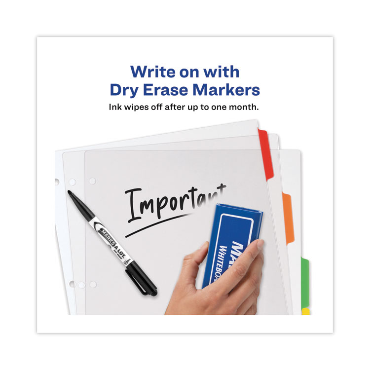 Avery Write and Erase Big Tab Paper Dividers, 5-Tab, 11 x 8.5, White, Assorted Tabs, 1 Set (AVE23076)