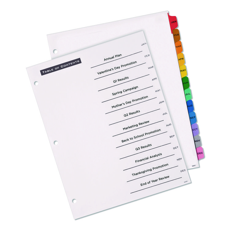 Office Essentials Table ‘n Tabs Dividers, 26-Tab, A to Z, 11 x 8.5, White, Assorted Tabs, 1 Set (AVE11677)