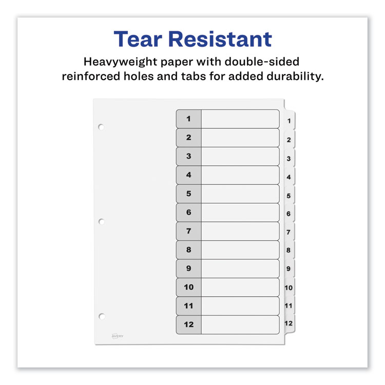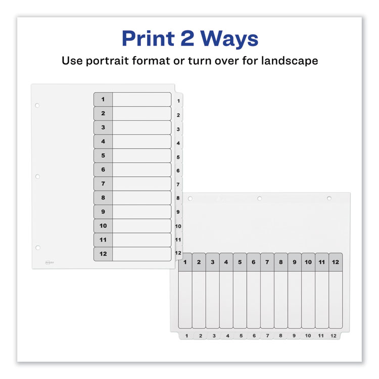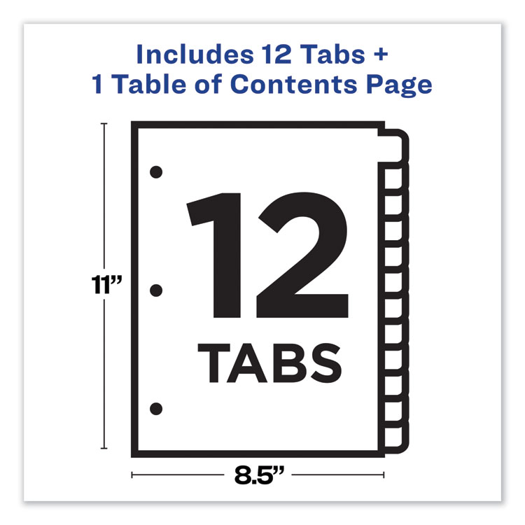 Avery Customizable TOC Ready Index Black and White Dividers, 12-Tab, 1 to 12, 11 x 8.5, 1 Set (AVE11140)