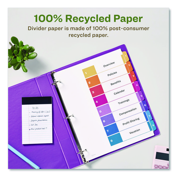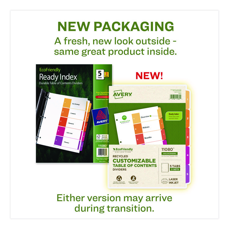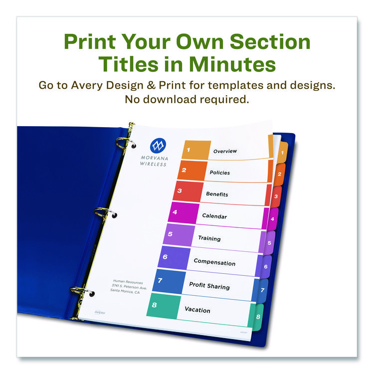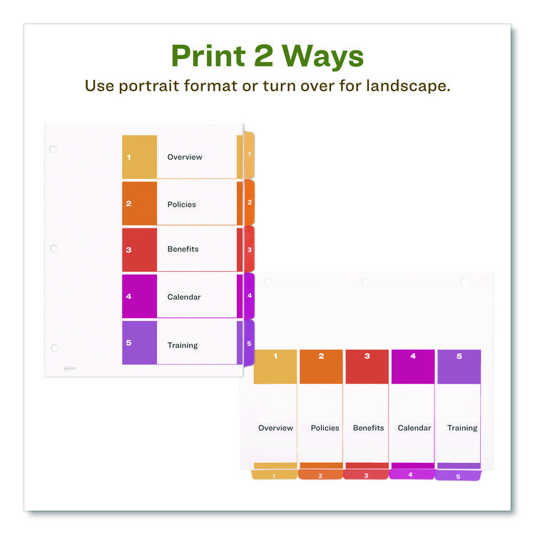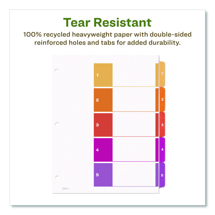 Avery Big Tab Insertable One-Pocket Plastic Dividers, 5-Tab, 11.13 x 9.25, Assorted, 1 Set (AVE07714)