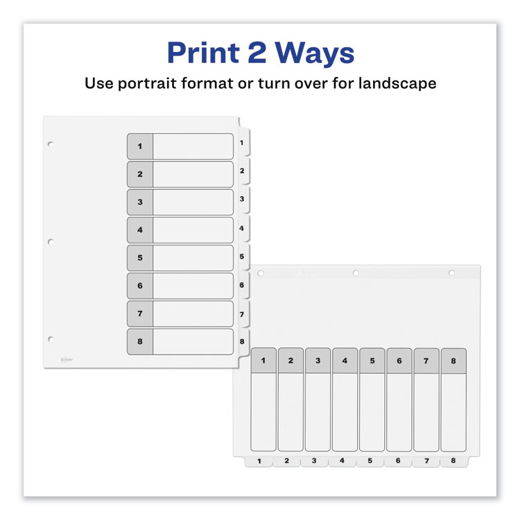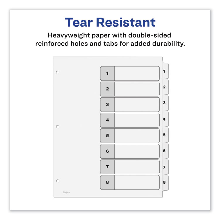 Avery Customizable TOC Ready Index Black and White Dividers, 8-Tab, 1 to 8, 11 x 8.5, 1 Set (AVE11132)