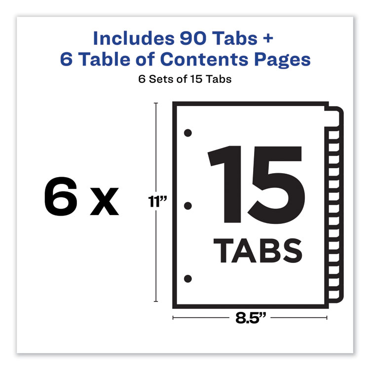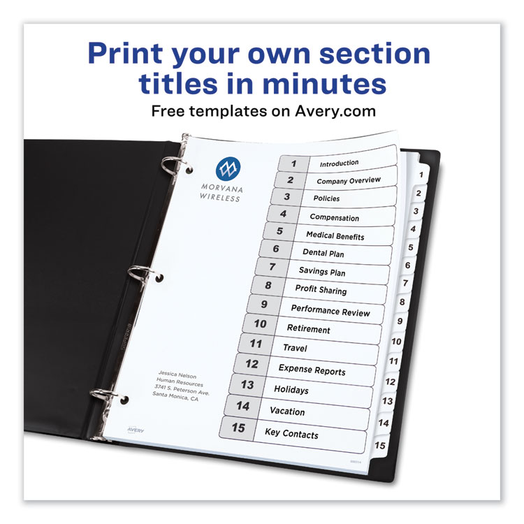 Avery Customizable TOC Ready Index Black and White Dividers, 15-Tab, 1 to 15, 11 x 8.5, 1 Set (AVE11142)