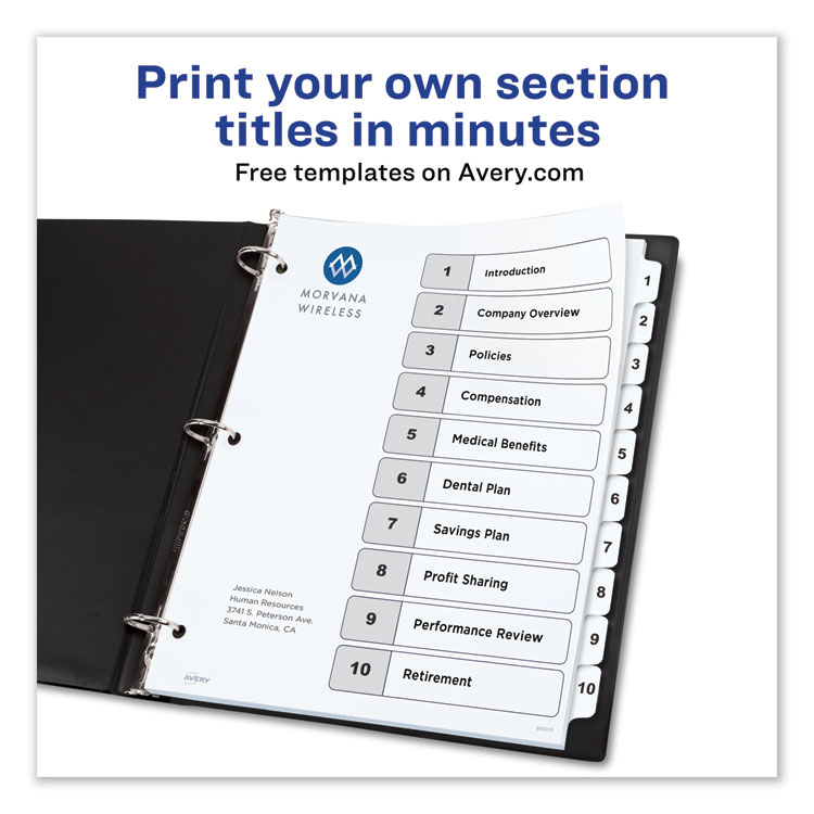 Avery Customizable TOC Ready Index Black and White Dividers, 10-Tab, 1 to 10, 11 x 8.5, 1 Set (AVE11134)