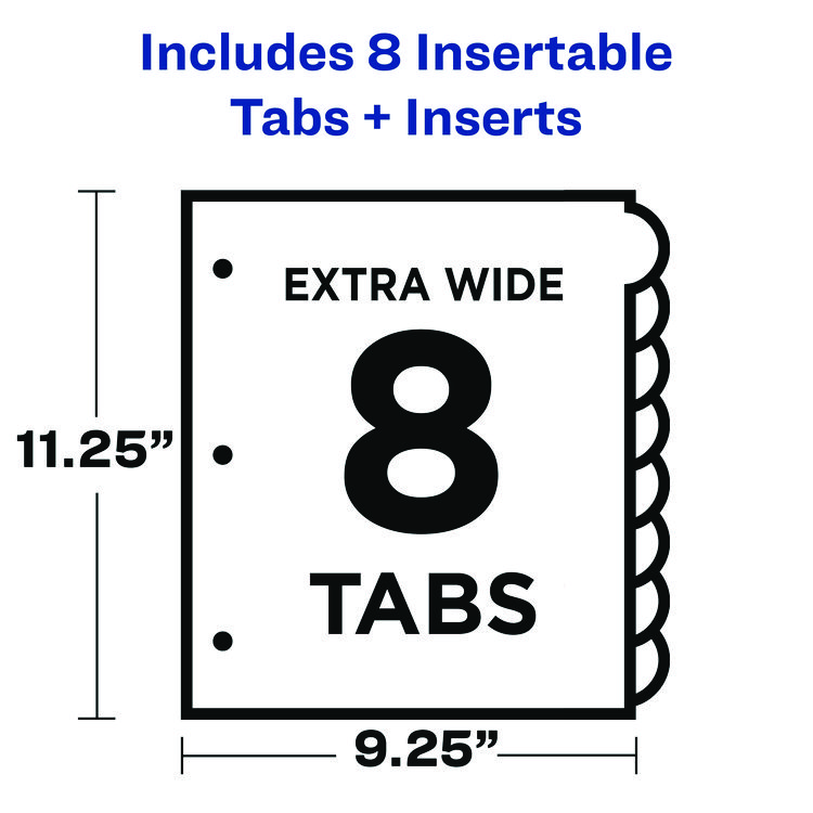 Avery Insertable Big Tab Dividers, 8-Tab, 11.13 x 9.25, White, Assorted Tabs, 1 Set (AVE11222)