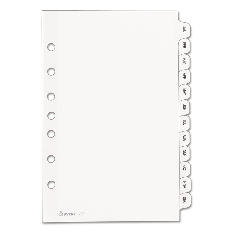 Avery Preprinted Tab Dividers, 12-Tab, Jan. to Dec., 8.5 x 5.5, White, 1 Set (AVE11315)