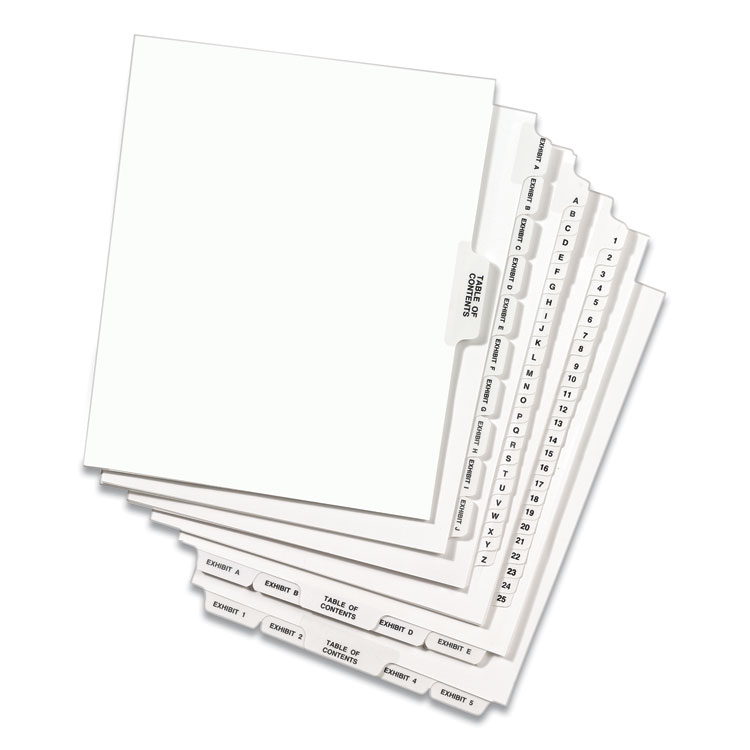 Avery Preprinted Legal Exhibit Side Tab Index Dividers, Avery Style, 26-Tab, 26 to 50, 11 x 8.5, White, 1 Set (AVE11372)