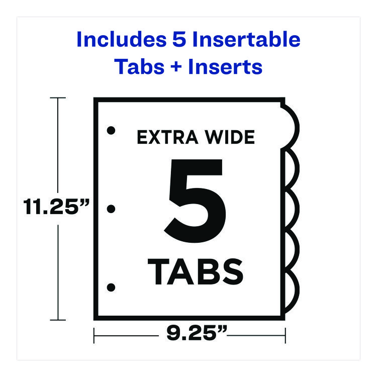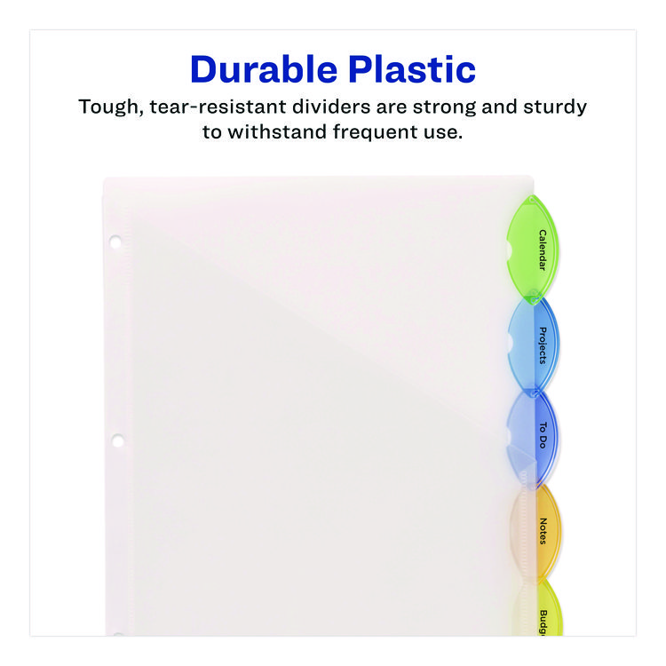 Avery Insertable Style Edge Tab Plastic 1-Pocket Dividers, 5-Tab, 11.25 x 9.25, Translucent, 1 Set (AVE11292)