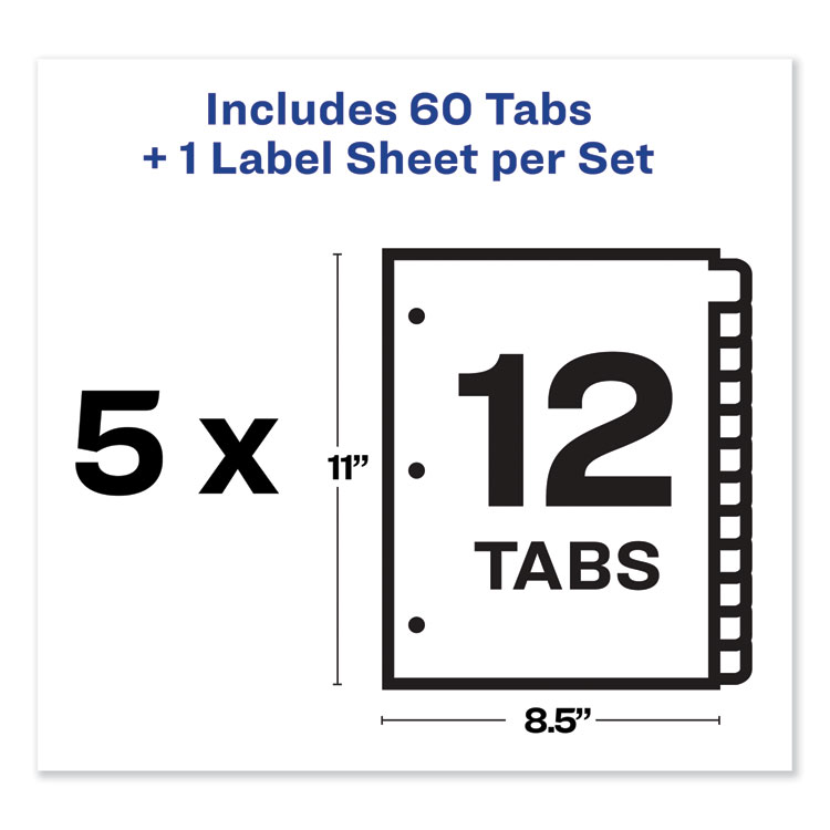 Avery Print and Apply Index Maker Clear Label Dividers, 12-Tab, Color Tabs, 11 x 8.5, White, 5 Sets (AVE11405)