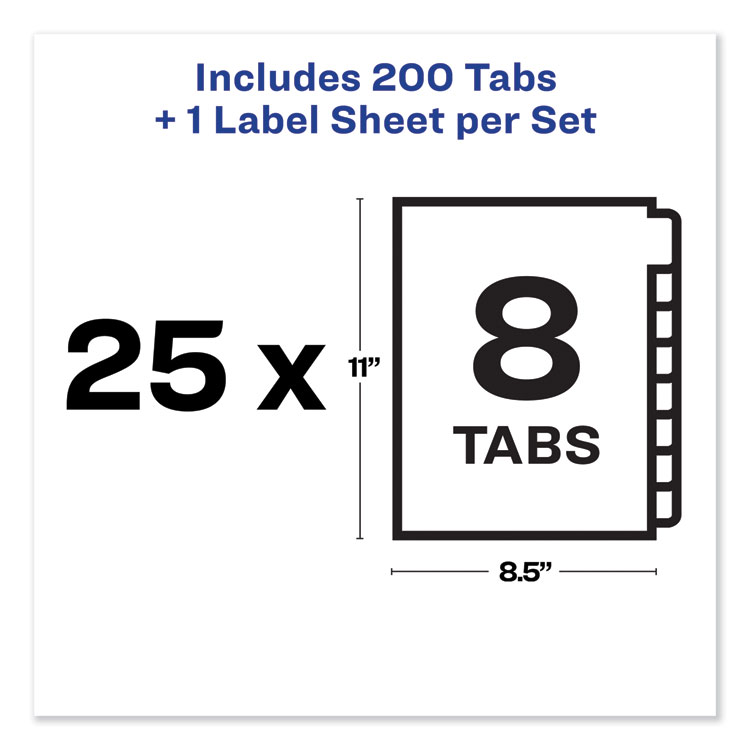 Avery Print and Apply Index Maker Clear Label Dividers, 8-Tab, Color Tabs, 11 x 8.5, White, Traditional Color Tabs, 25 Sets (AVE11424)
