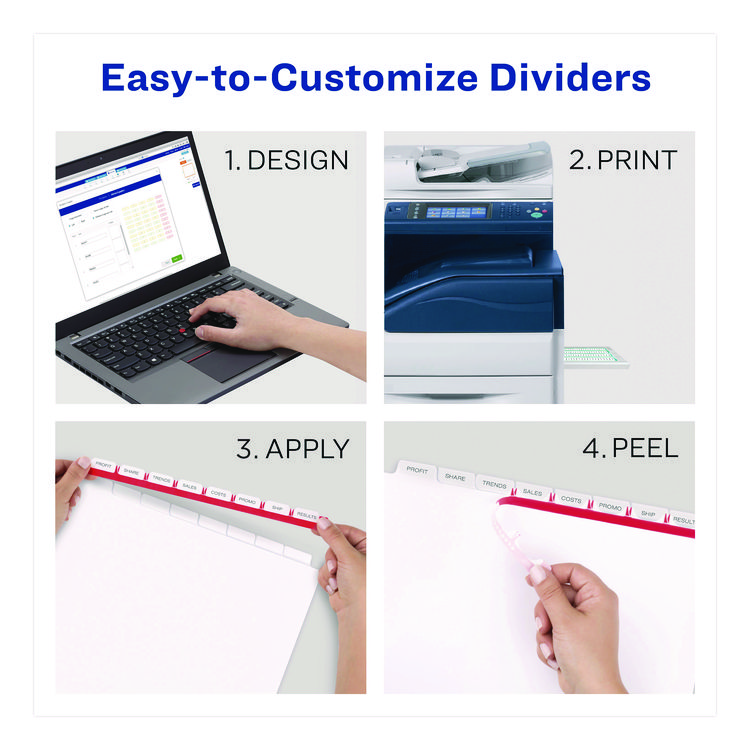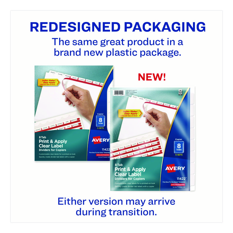 Avery Print and Apply Index Maker Clear Label Dividers, Copiers, 8-Tab, 11 x 8.5, White, 5 Sets (AVE11422)