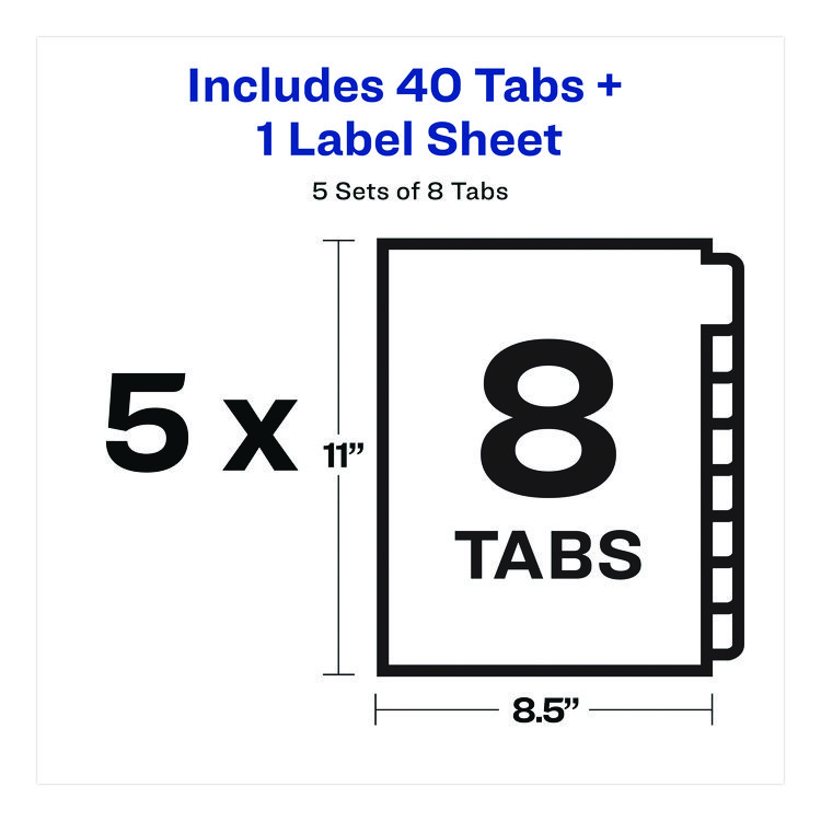 Avery Print and Apply Index Maker Clear Label Unpunched Dividers, 8-Tab, 11 x 8.5, White, 5 Sets (AVE11432)