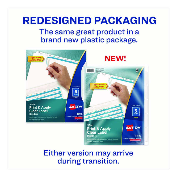 Avery Print and Apply Index Maker Clear Label Dividers, Copiers, 5-Tab, 11 x 8.5, White, 5 Sets (AVE11421)