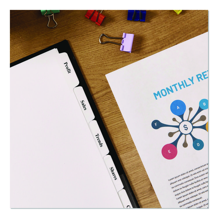 Avery Print and Apply Index Maker Clear Label Unpunched Dividers, 5-Tab, 11 x 8.5, White, 5 Sets (AVE11431)