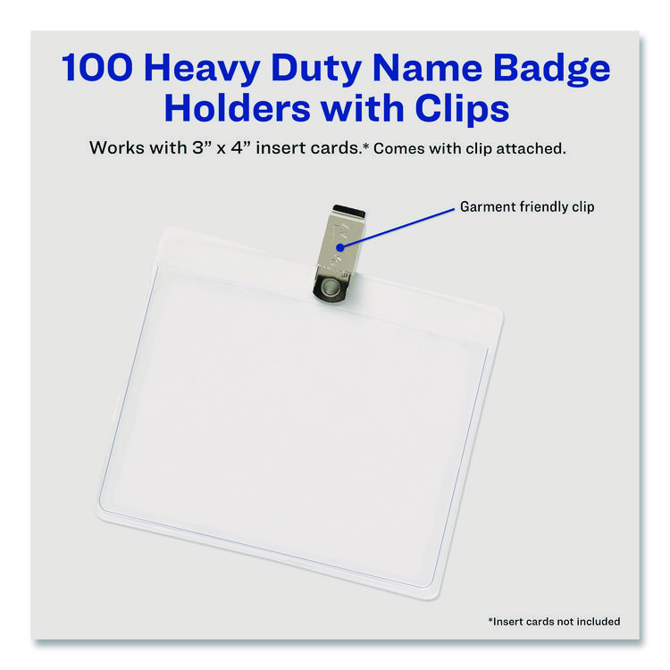 Avery Heavy-Duty Clip-Style Badge Holders, Horizontal, 4 x 3, Clear, 100/Box (AVE2923)