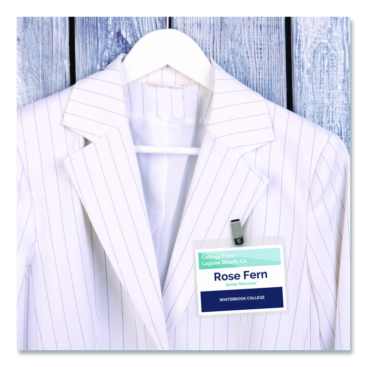 Universal Clear Badge Holders w/Garment-Safe Clips, 3 x 4, White Inserts, 50/Box (UNV56004)