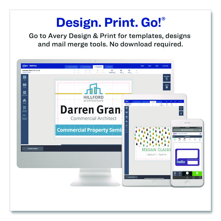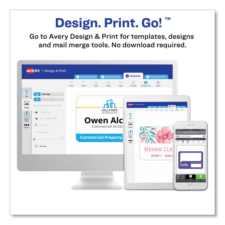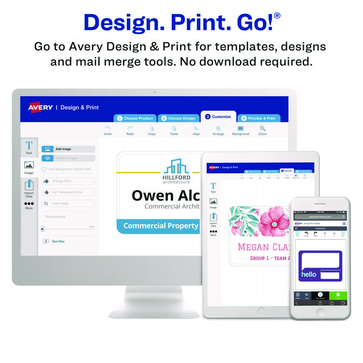 Avery Flexible Adhesive Name Badge Labels, “Hello”, 3 3/8 x 2 1/3, Assorted, 120/PK (AVE8722)