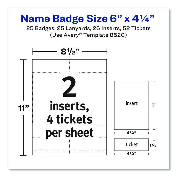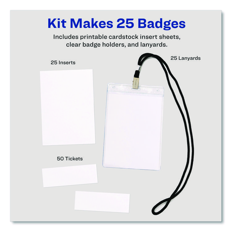 Avery Lanyard-Style Badge Holder w/Laser/Inkjet Inserts, Top Load, 4.25 x 6, WE, 25/PK (AVE8520)