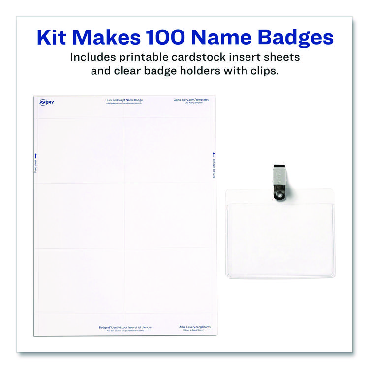 Avery Clip-Style Name Badge Holder with Laser/Inkjet Insert, Top Load, 4 x 3, White, 100/Box (AVE74541)