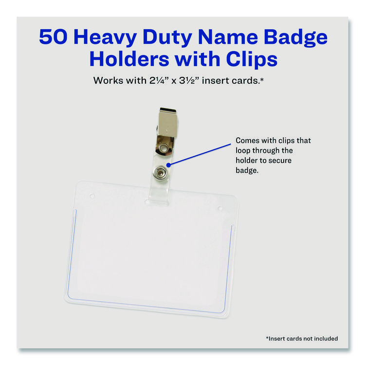 Avery Secure Top Clip-Style Badge Holders, Horizontal, 2 1/4 x 3 1/2, Clear, 50/Box (AVE2921)