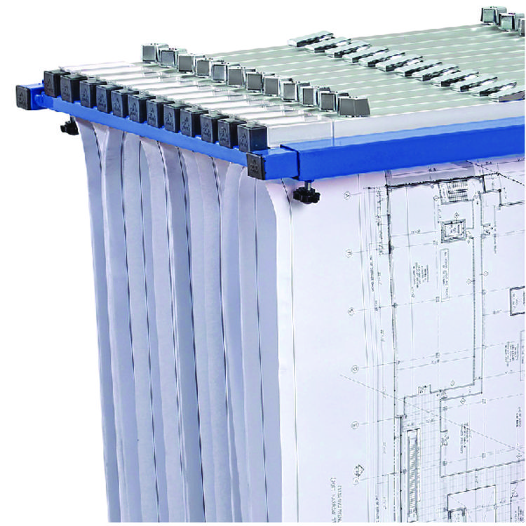 Safco Sheet File Drop/Lift Wall Rack, 12 Hanging Clamps, 43.75w x 11.5d x 7.75h, Sand (SAF5030)