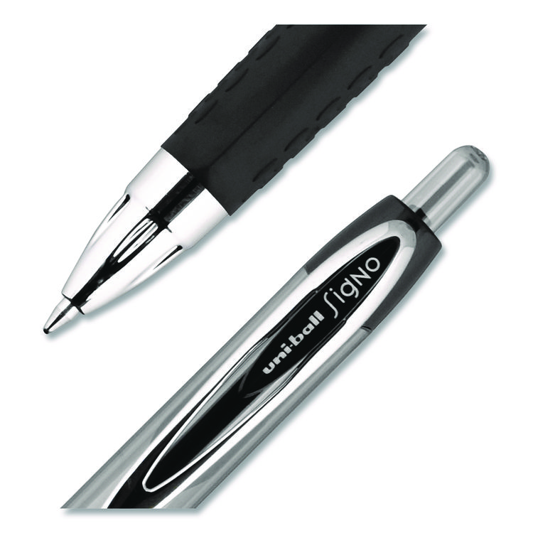uniball Signo 207 Gel Pen, Retractable, Fine 0.5 mm, Black Ink, Smoke/Black Barrel, Dozen (UBC61255)
