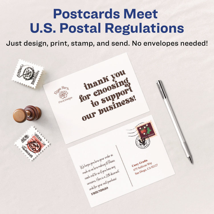 Avery Printable Postcards, Inkjet, 80 lb, 4 x 6, Matte White, 100 Cards, 2 Cards/Sheet, 50 Sheets/Box (AVE8386)