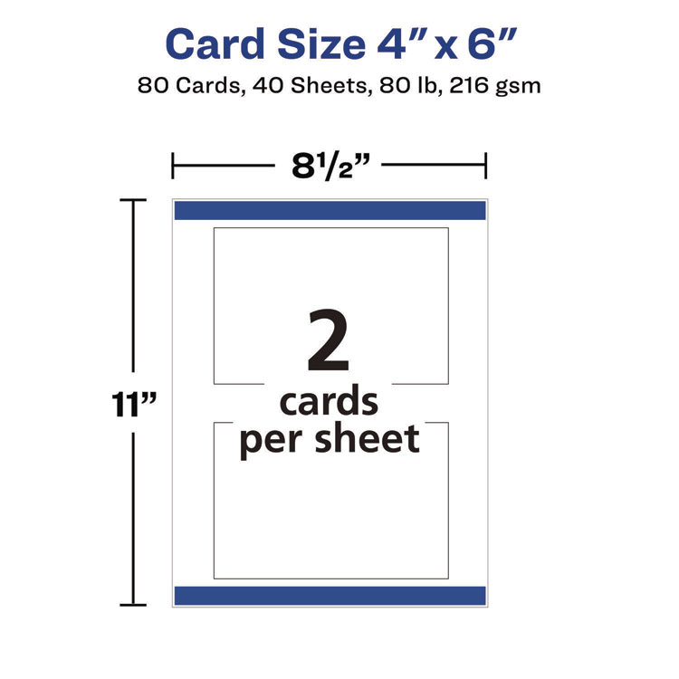 Avery Printable Postcards, Laser, 80 lb, 4 x 6, Matte White, 80 Cards, 2 Cards/Sheet, 40 Sheets/Box (AVE5889)