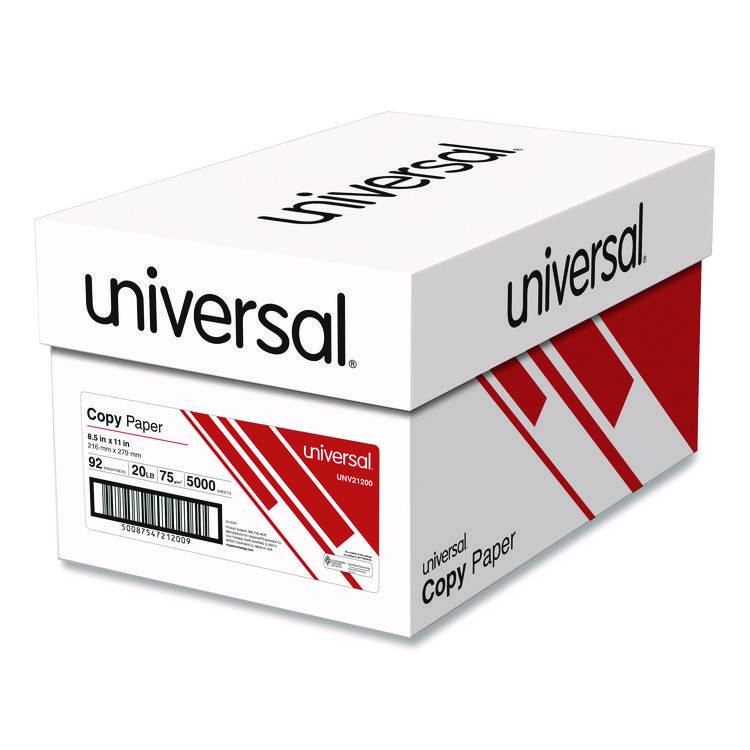 Universal Copy Paper, 92 Bright, 20 lb Bond Weight, 8.5 x 11, White, 500 Sheets/Ream, 10 Reams/Carton (UNV21200)