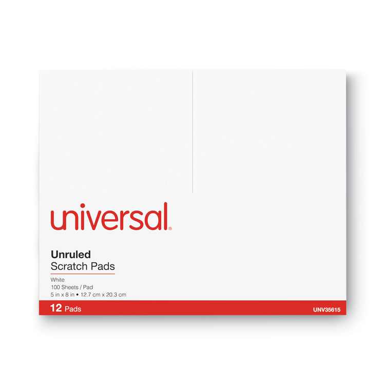 Universal Scratch Pads, Unruled, 5 x 8, White, 100 Sheets, 12/Pack (UNV35615)