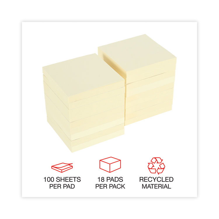 Universal Recycled Self-Stick Note Pads, 3″ x 3″, Yellow, 100 Sheets/Pad, 18 Pads/Pack (UNV28068)