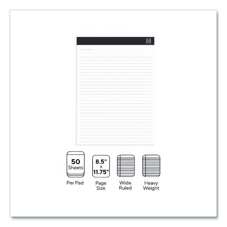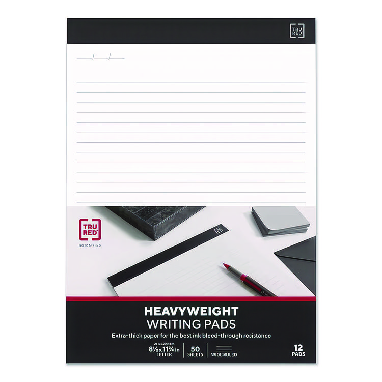 TRU RED Notepads, Wide/Legal Rule, (50) White 8.5 x 11.75 Sheets, 12/Pack (TUD24419921)