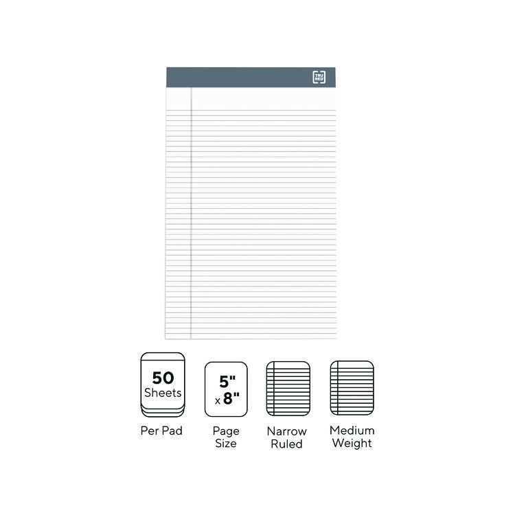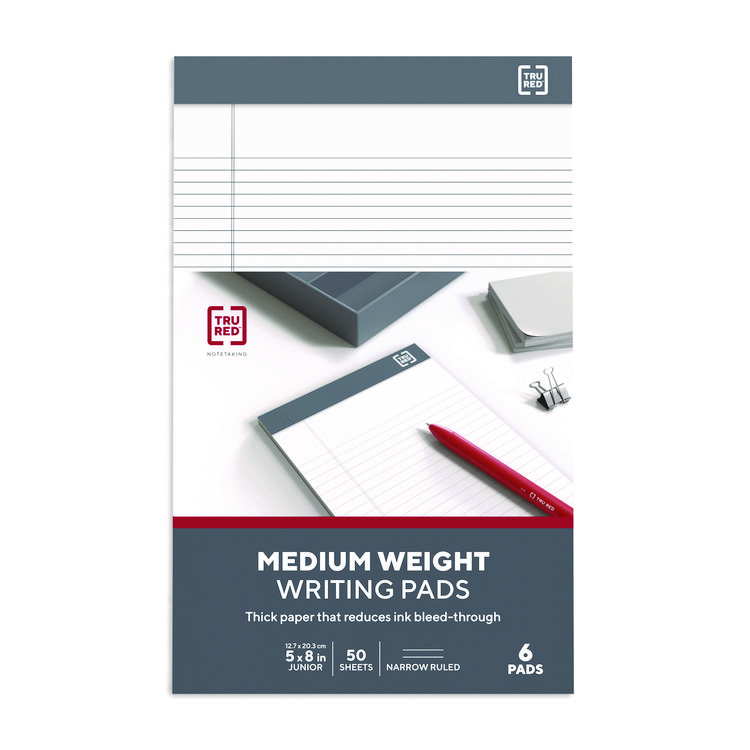 TRU RED Notepads, Narrow Rule, 50 White 5 x 8 Sheets, 6/Pack (TUDTR59900)