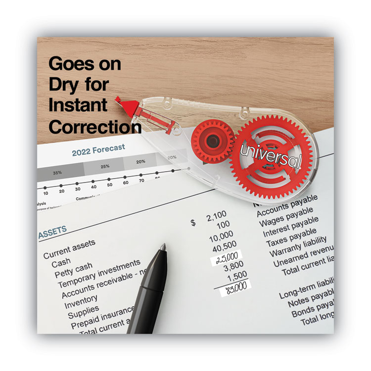 Universal Side-Application Correction Tape, Transparent Red Applicator, 0.2″ x 393″, 6/Pack (UNV75610)