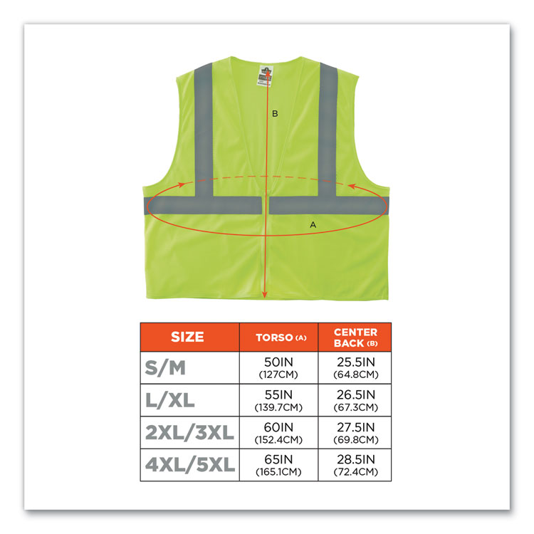 ergodyne GloWear 8205Z Class 2 Super Economy Mesh Vest, Polyester, Lime, 4X-Large/5X-Large (EGO20999)