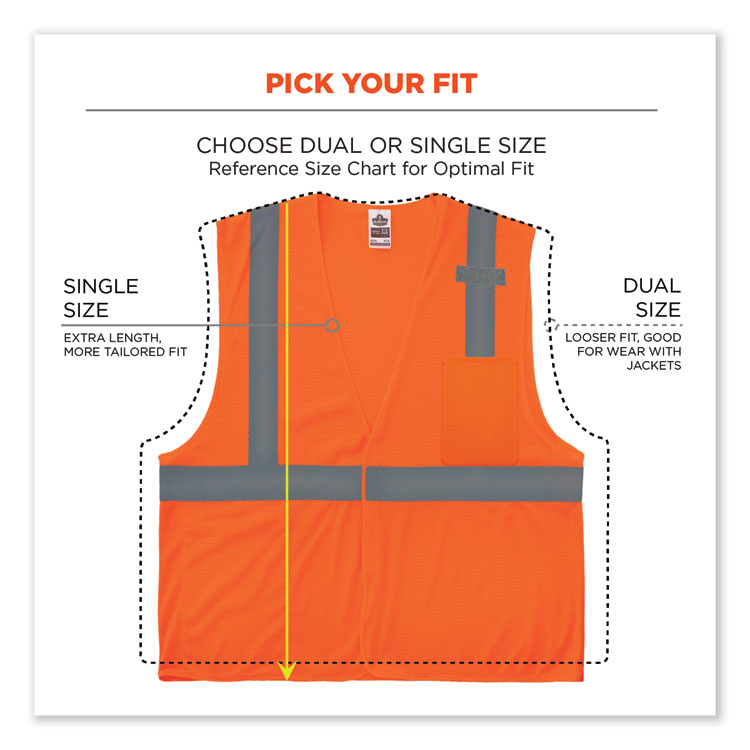 ergodyne GloWear 8205Z Class 2 Super Economy Mesh Vest, Polyester, Orange, 2X-Large/3X-Large (EGO20987)