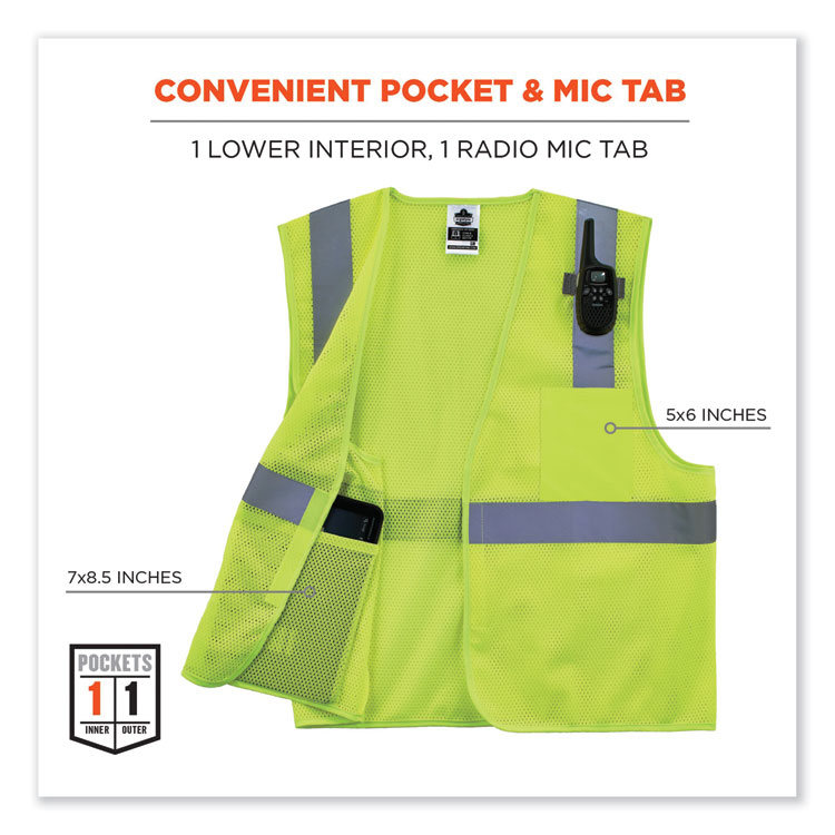 ergodyne GloWear 8205Z Class 2 Super Economy Mesh Vest, Polyester, Lime, Small/Medium (EGO20993)