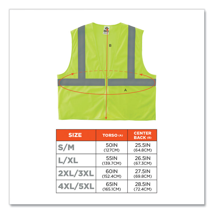 ergodyne GloWear 8205Z Class 2 Super Economy Mesh Vest, Polyester, Lime, 2X-Large/3X-Large (EGO20997)